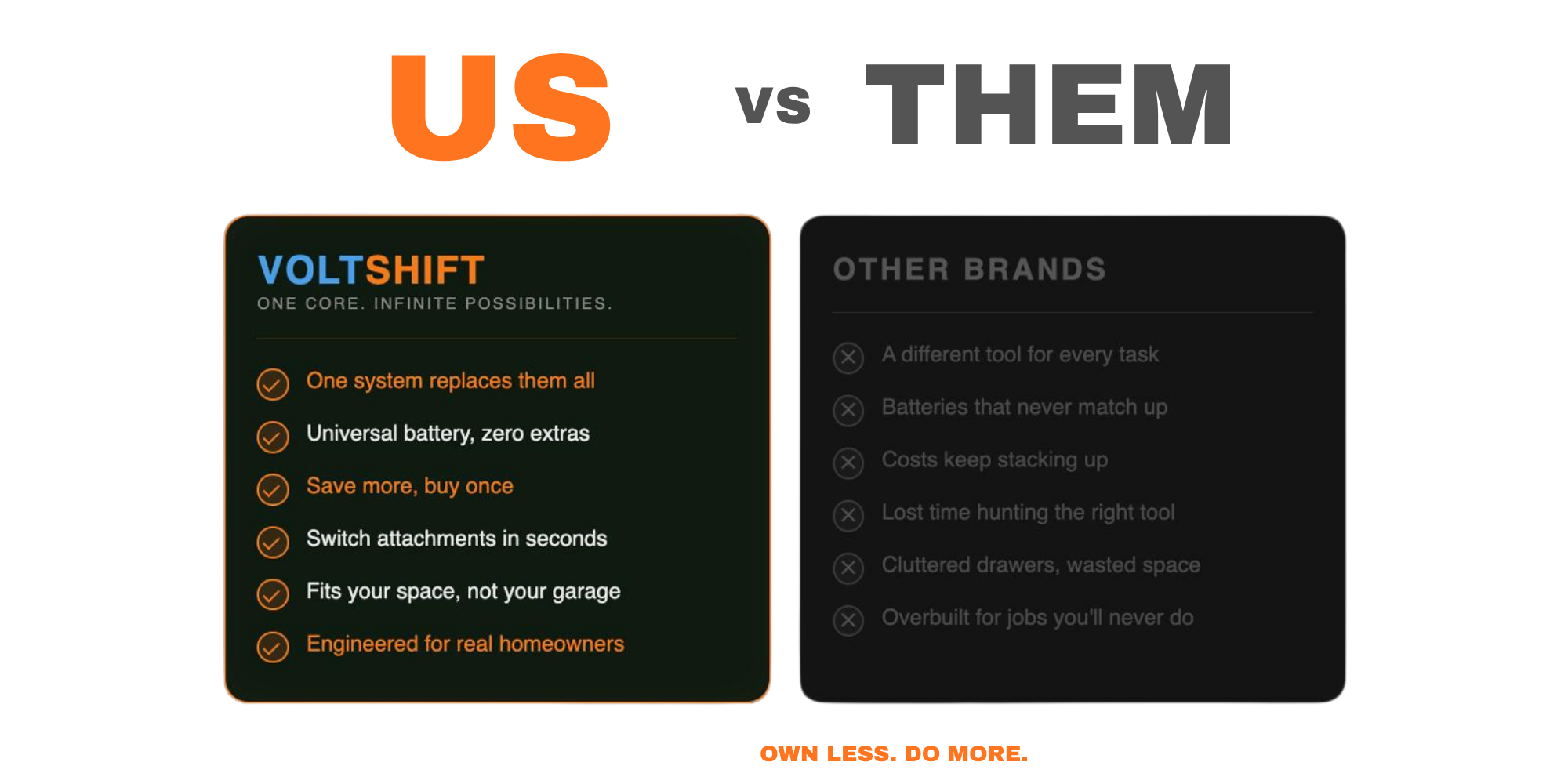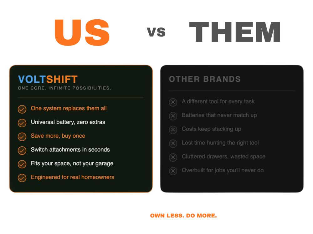 The VOLTSHIFT 4-Item Core Set is your entry into a smarter, modular tool system — built around performance, control, and zero unnecessary clutter.